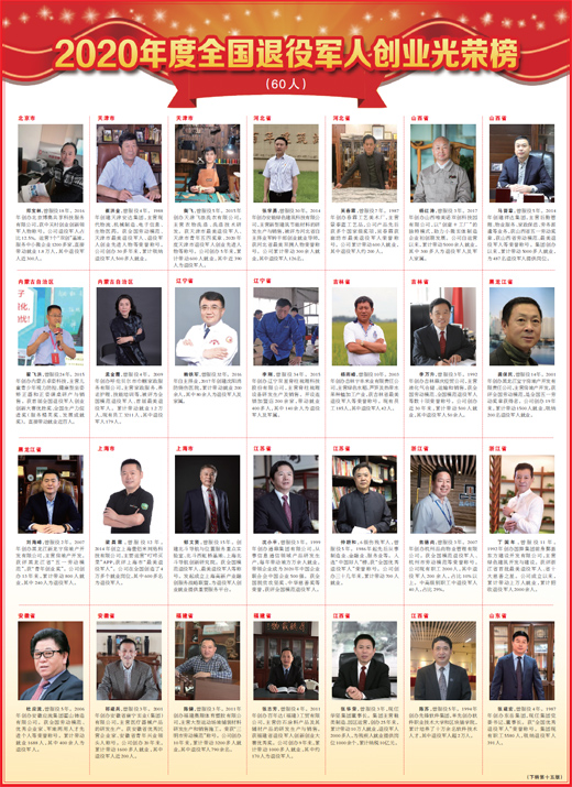 01日2021-02崔洪金,現(xiàn)任天津安達集團股份有限公司黨委書記、董事長,曾服役4年。1988年創(chuàng)建天津安達集團,主營現(xiàn)代物流、機械制造、電子信息、生物醫(yī)藥。獲全國勞動模范、天津市最美退役軍人、退役軍人創(chuàng)業(yè)先進人物等榮譽稱號。公司創(chuàng)辦30多年來,累計吸納退役軍人500多人就業(yè)。 看原文點這里!!! [查看詳情]
