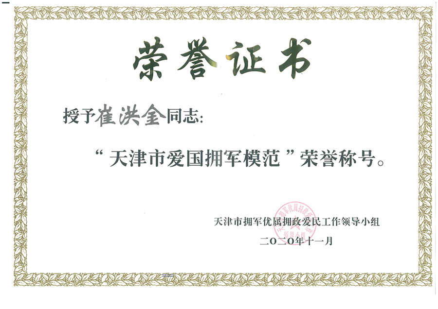 15日2020-12喜訊:12月15日,天津市擁軍優屬擁政愛民工作領導小組授予安達集團黨委書記、董事長崔洪金“天津市愛國擁軍模范”榮譽稱號,以表彰多年來崔洪金同志及安達集團為退役軍人事務等工作所做出的突出貢獻! [查看詳情]