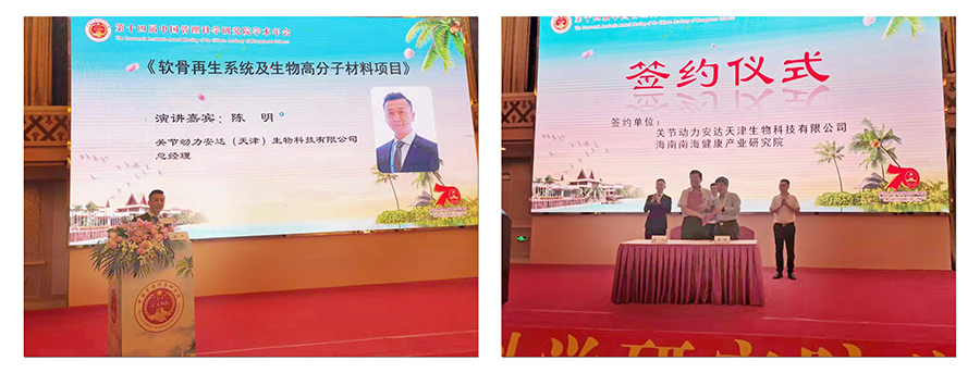 隨后安達集團黨委書記董事長崔洪金與海南南海健康產(chǎn)業(yè)研究院院長曾渝共同完成戰(zhàn)略合作簽約儀式,“軟骨再生系統(tǒng)”落地博鰲樂城國際醫(yī)療旅游先行區(qū)項目進行戰(zhàn)略合作,并通力打造具有規(guī)模化,效益化,品牌化的高端醫(yī)療服務(wù)綜合運營平臺。該項目填補了國內(nèi)運動醫(yī)學(xué)軟骨修復(fù)材料的空白,為廣大關(guān)節(jié)疾病患者帶來了福音,旨在推進全國大健康產(chǎn)業(yè)的可持續(xù)發(fā)展。