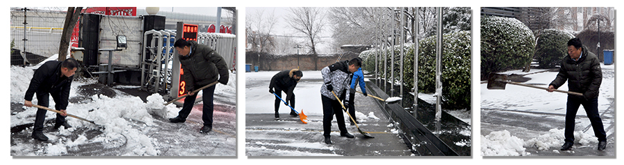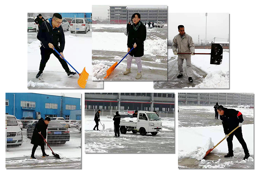 由于條件的限制,除雪工具只有鐵锨、除雪锨和掃帚,再加上雪后的低溫,使除雪工作更加困難,大家的手和臉都凍得通紅。然而,這一切絲毫沒有影響員工們的熱情和工作效率,大家你追我趕,齊心協(xié)力,配合默契,鏟的鏟、推的推、掃的掃,干的熱火朝天,不亦樂乎,忙碌的身影構(gòu)成了一道亮麗的風(fēng)景線。雖然室外溫度很低,但大家勞動的熱情和團結(jié)的力量讓這個冬日變得格外溫暖。