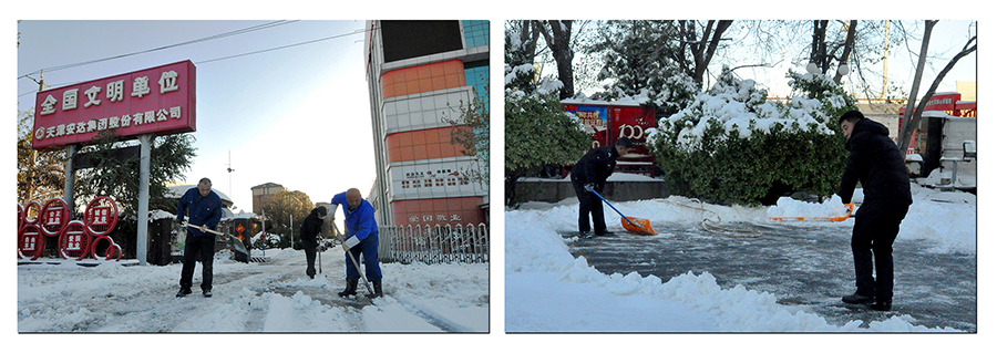 11月7日,天津市迎來今冬首場(chǎng)強(qiáng)降雪。據(jù)天津市氣象臺(tái)發(fā)布信息,降雪量已達(dá)暴雪級(jí)別。降雪過后,集團(tuán)各廠區(qū)道路都被厚厚的積雪所覆蓋,車輛行駛緩慢,行人步履蹣跚,厚厚的積雪給行人和過往車輛造成極大的不便和安全隱患。