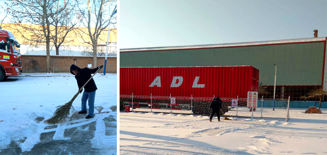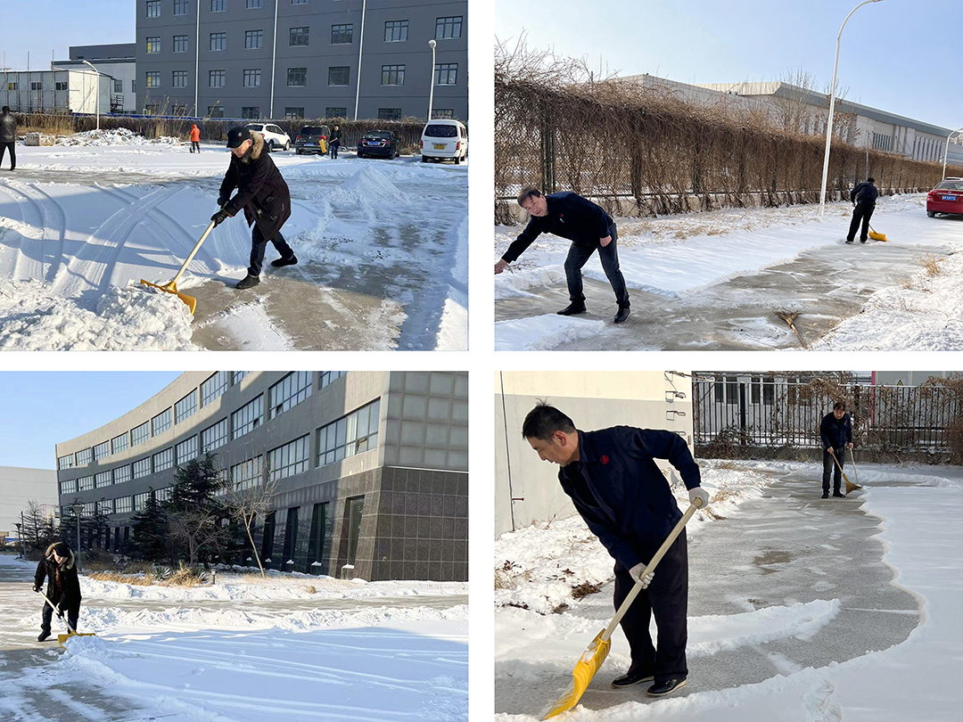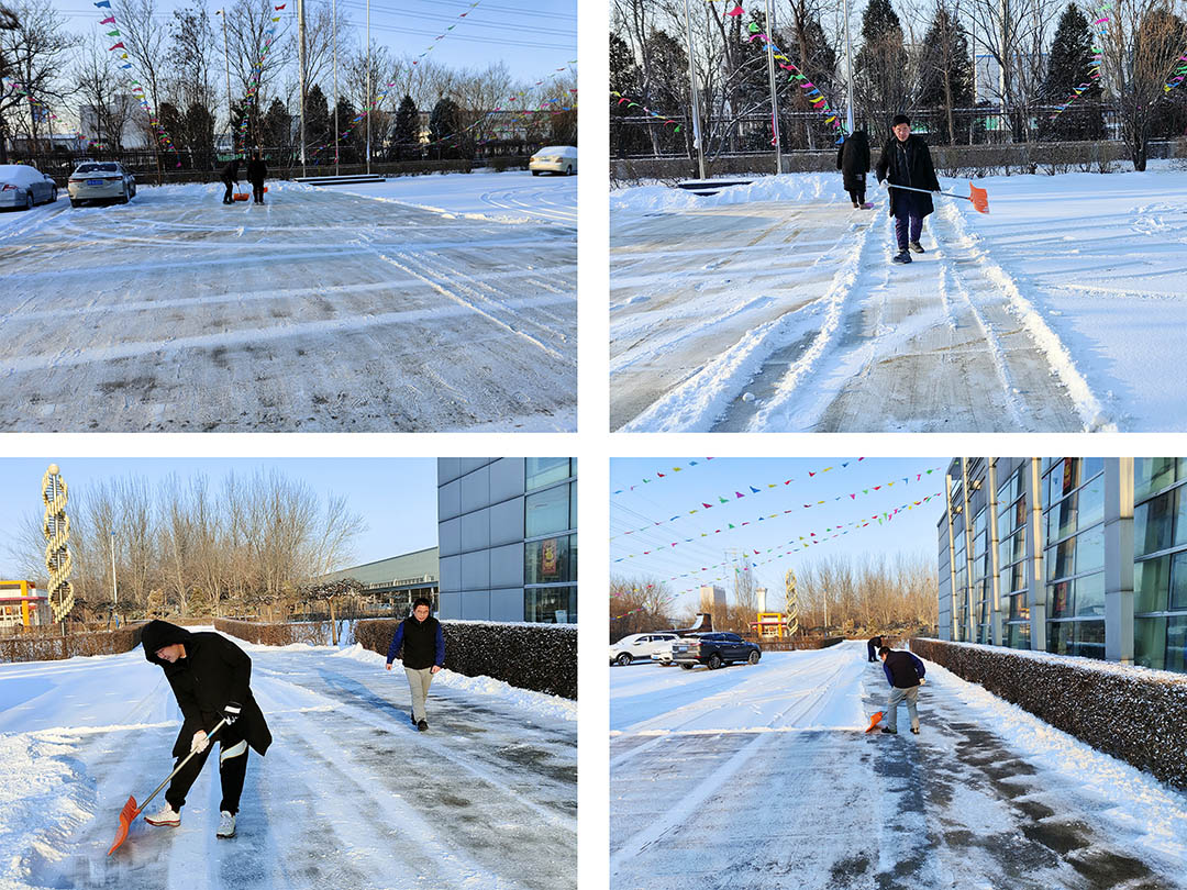 2月13日,虎年首場降雪如約而至,洋洋灑灑的雪花很快將安達集團各廠院路面覆蓋。集團各子公司以雪為令,立即行動起來。各單位員工在相關領導帶領下,手拿鐵鍬、掃帚、簸箕等工具,對辦公樓門口和廠區內重要點位、路面進行積雪大清掃。積雪的清除,為員工和車輛出入提供了安全保障。寒風襲襲,盡管大家凍得手腳冰涼,但全體員工齊心協作,相互配合,一派熱火朝天的除雪場景,甚是鼓舞人心。