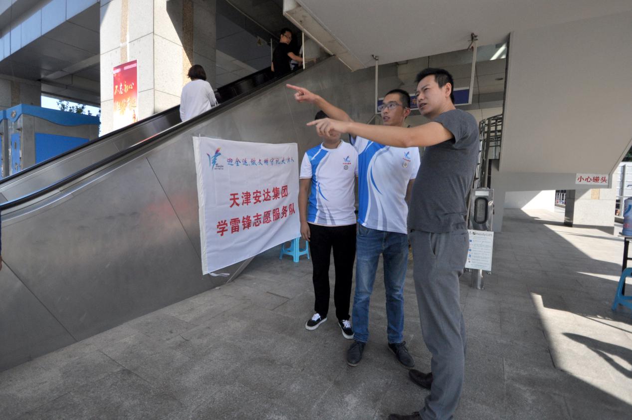 安達集團"迎全運做文明有禮天津人"學雷鋒志愿服務崗的志愿者全線上崗服務。身著統一服裝的志愿者以良好的精神風貌和嫻熟的服務技能,熱心為本地市民和到東麗區觀賽游覽的客人提供臨時休息、指路、飲水、借還雨傘等相關便民服務以及全運會東麗賽區賽程咨詢等。