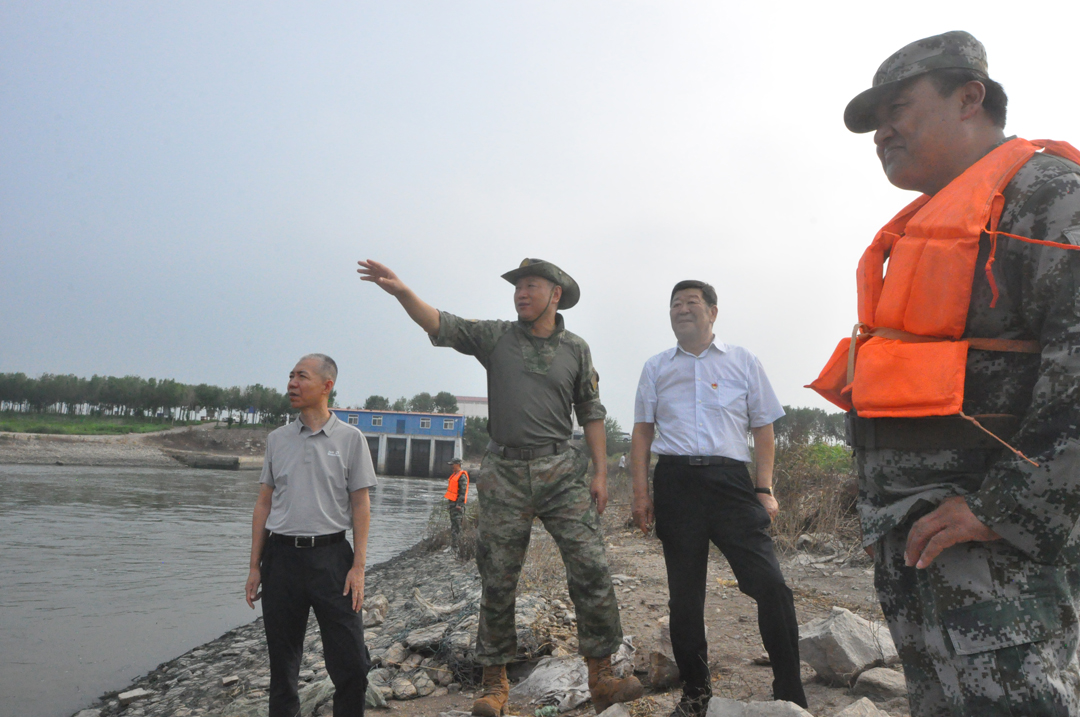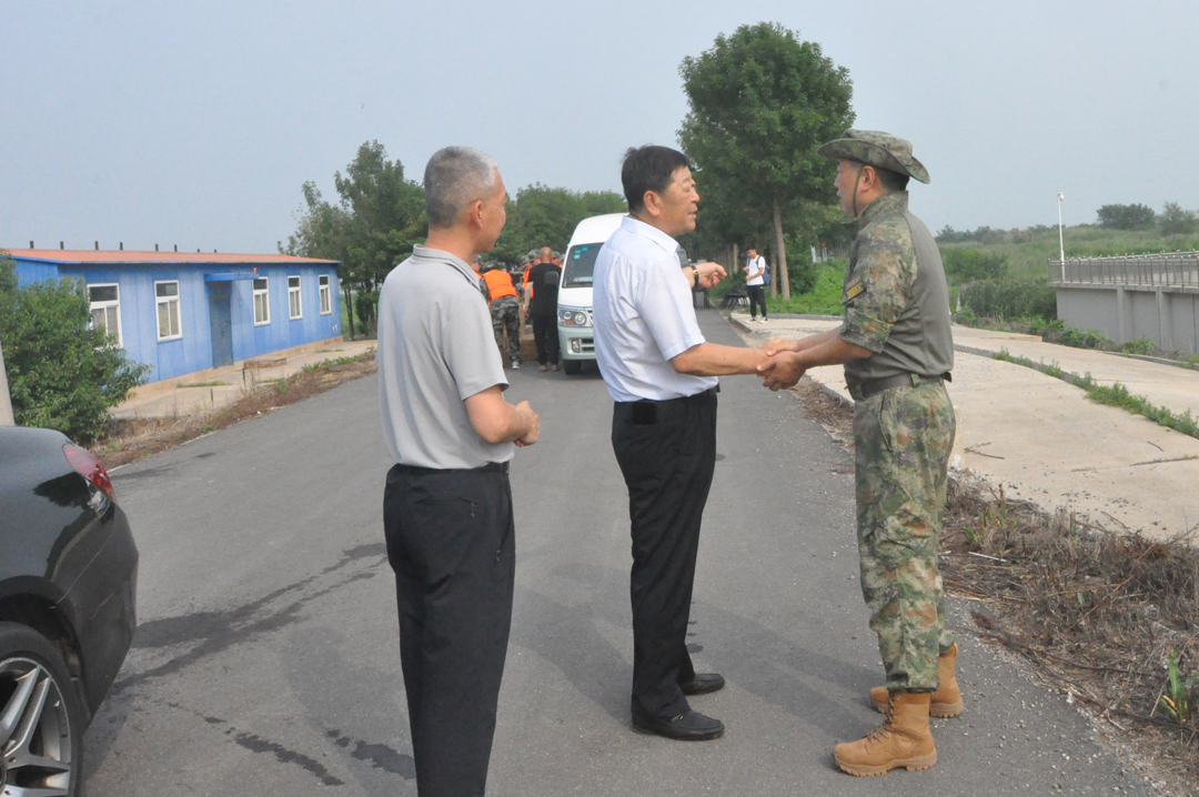 8月8日,區委常委、武裝部部長劉躍民,區退役軍人事務局黨組書記、局長 曹硯海,全國“最美擁軍人物”、安達集團黨委書記、董事長崔洪金一起到永定新河東麗段,慰問抗洪搶險一線民兵。