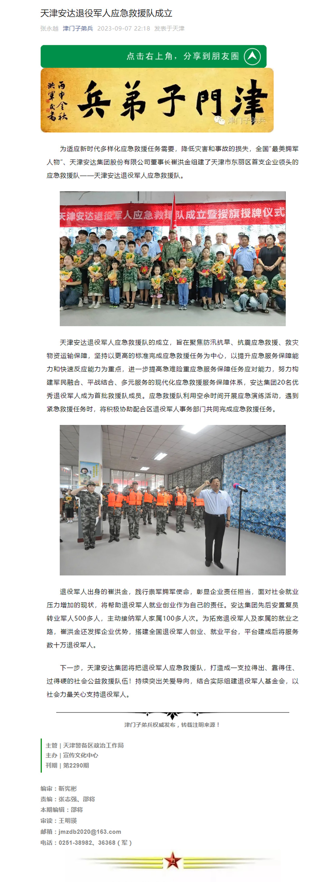 "津門子弟兵”宣傳安達集團退役軍人應急救援隊成立