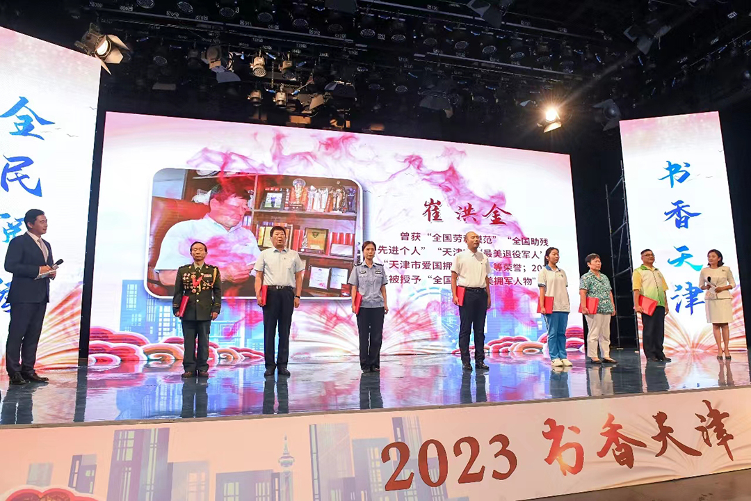 活動由創意節目《千里江山圖》拉開序幕,通過“奮進·天津”“鄉土·天津”“科普·天津 ”“人文·天津”四個篇章,呈現書香天津·全民閱讀成果。在“奮進·天津”篇章中,2023年被授予“全國十大最美擁軍人物”的崔洪金董事長與其他嘉賓一起分別講述了自己關于閱讀的理解。