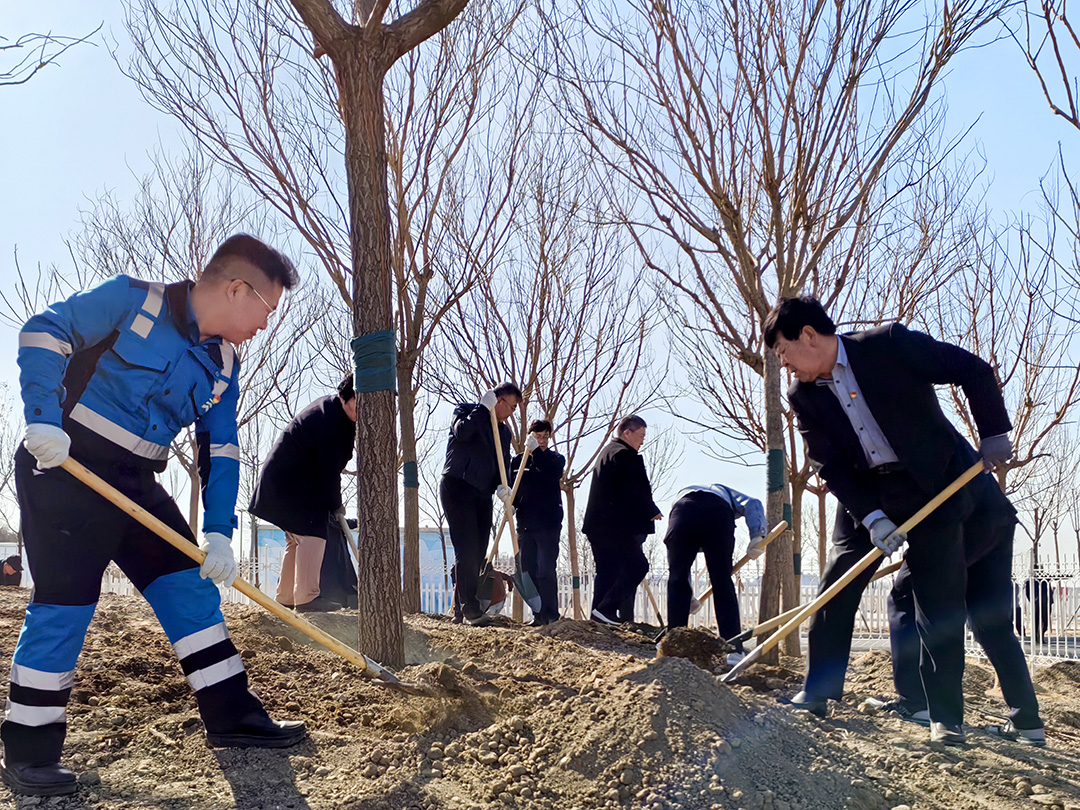 東湖風景區位于綠色生態屏障區內,風景區內湖面蕩漾,林水相依,草長鶯飛,成為市民游憩休閑、親近自然的好去處。趙飛、賈堤、李春、李大勇、劉偉、崔洪金等來到這里,拿起鐵鍬來到植樹區域,揮鍬鏟土、培土圍堰、提桶澆水,種下北京欒、旱柳等苗木。新種下的樹木迎風挺立,一排排矗立在岸邊,枝條在春風的吹拂下輕輕搖曳,充滿勃勃生機。